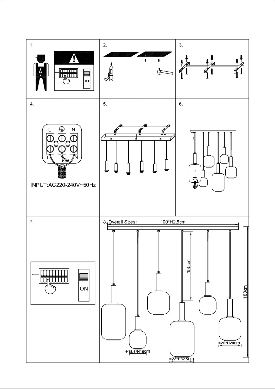 - 6 lichtpunten: Perfect voor grote ruimtes zoals de eetkamer of woonkamer.