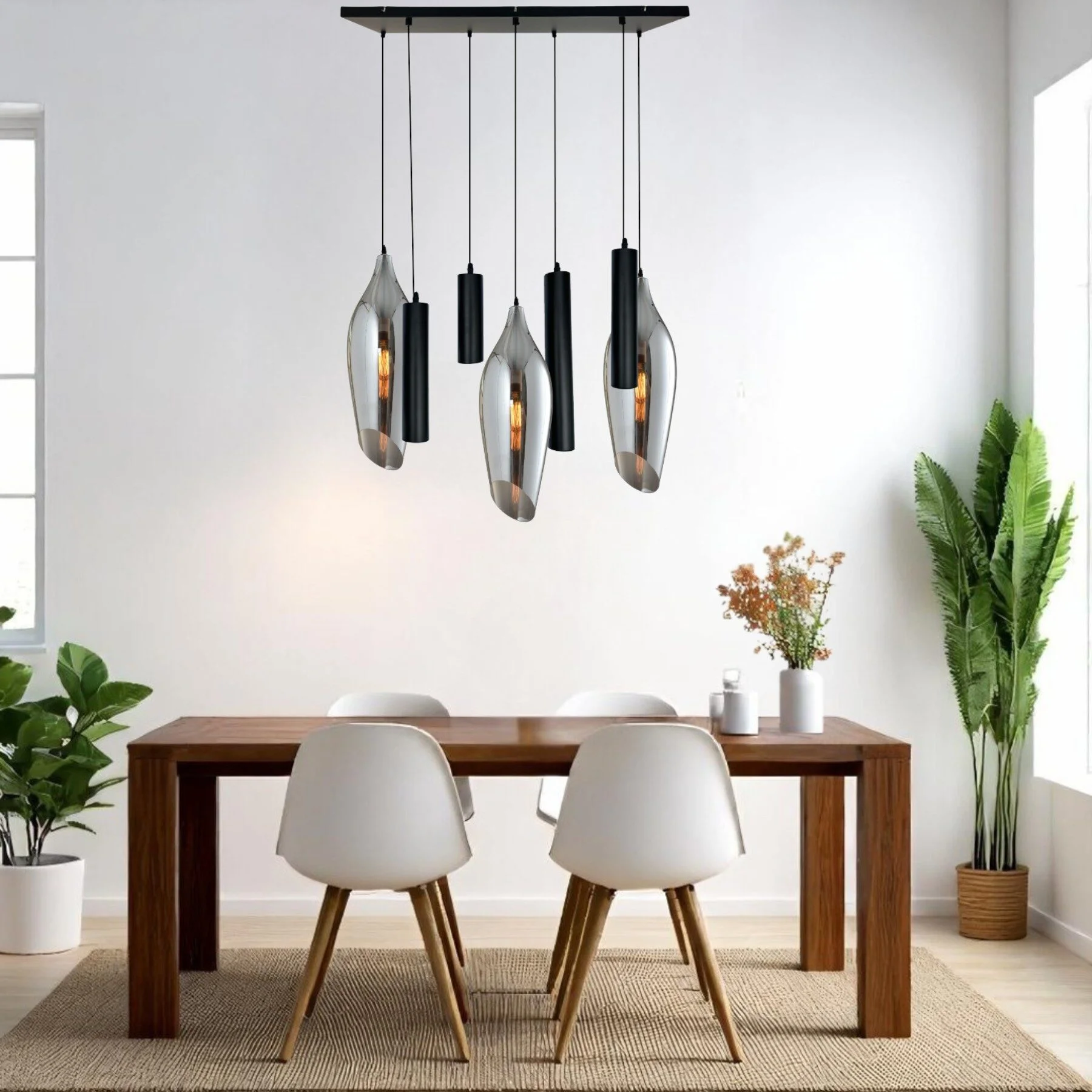Combineer de Belezza Chrome met onze Yora en een plafondplaat om jouw persoonlijke lampencombinatie te ontwerpen. Zoals te zien in het voorbeelddesign kun je variëren met kleuren en formaten om een unieke en stijlvolle opstelling te creëren.Breng een chique en sfeervolle touch aan jouw interieur met de Glazen Hanglamp Belezza Chrome. Dimbaar, elegant en perfect te combineren – een tijdloze keuze voor boven jouw eettafel of kookeiland!