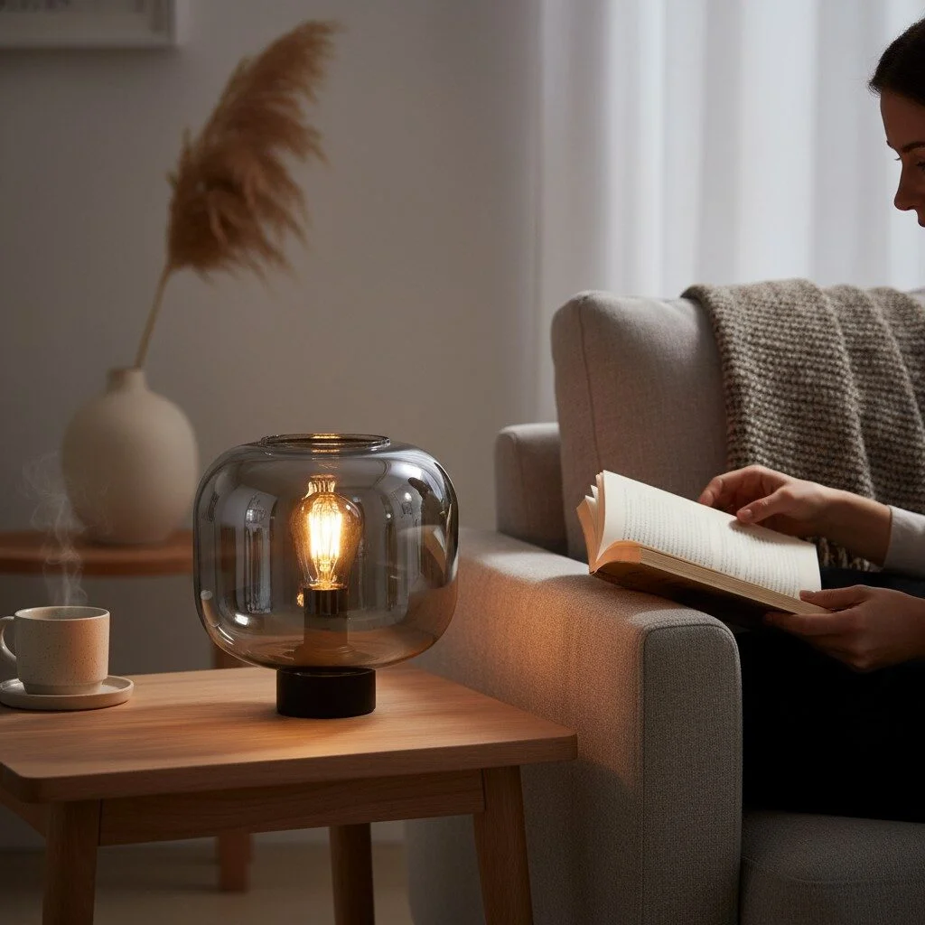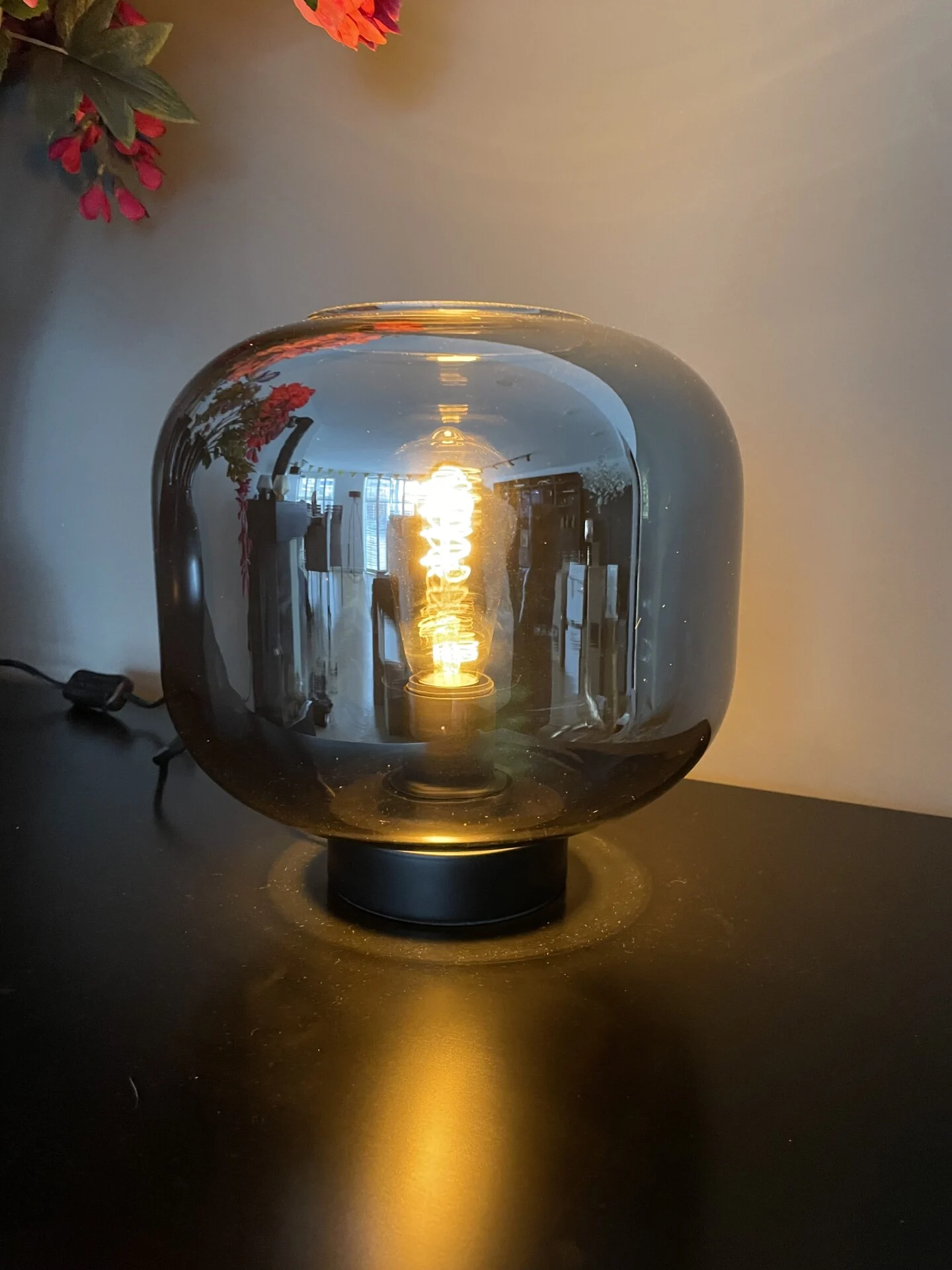 Glazen Tafellamp Dessa Zwart met Smoke Glas – Tijdloos en stijlvolDe Glazen Tafellamp Dessa Zwart met Smoke Glas straalt pure elegantie uit. Het rookglazen ontwerp gecombineerd met de zwarte basis creëert een verfijnde en moderne uitstraling. Perfect voor wie houdt van een eigentijdse, minimalistische stijl die toch warmte en sfeer brengt.De Dessa is ideaal als sfeerlamp op een bijzettafel, nachtkastje of dressoir. De diffuse lichtverspreiding van het smoke glas zorgt voor een subtiele en uitnodigende gloed, die elke ruimte transformeert.