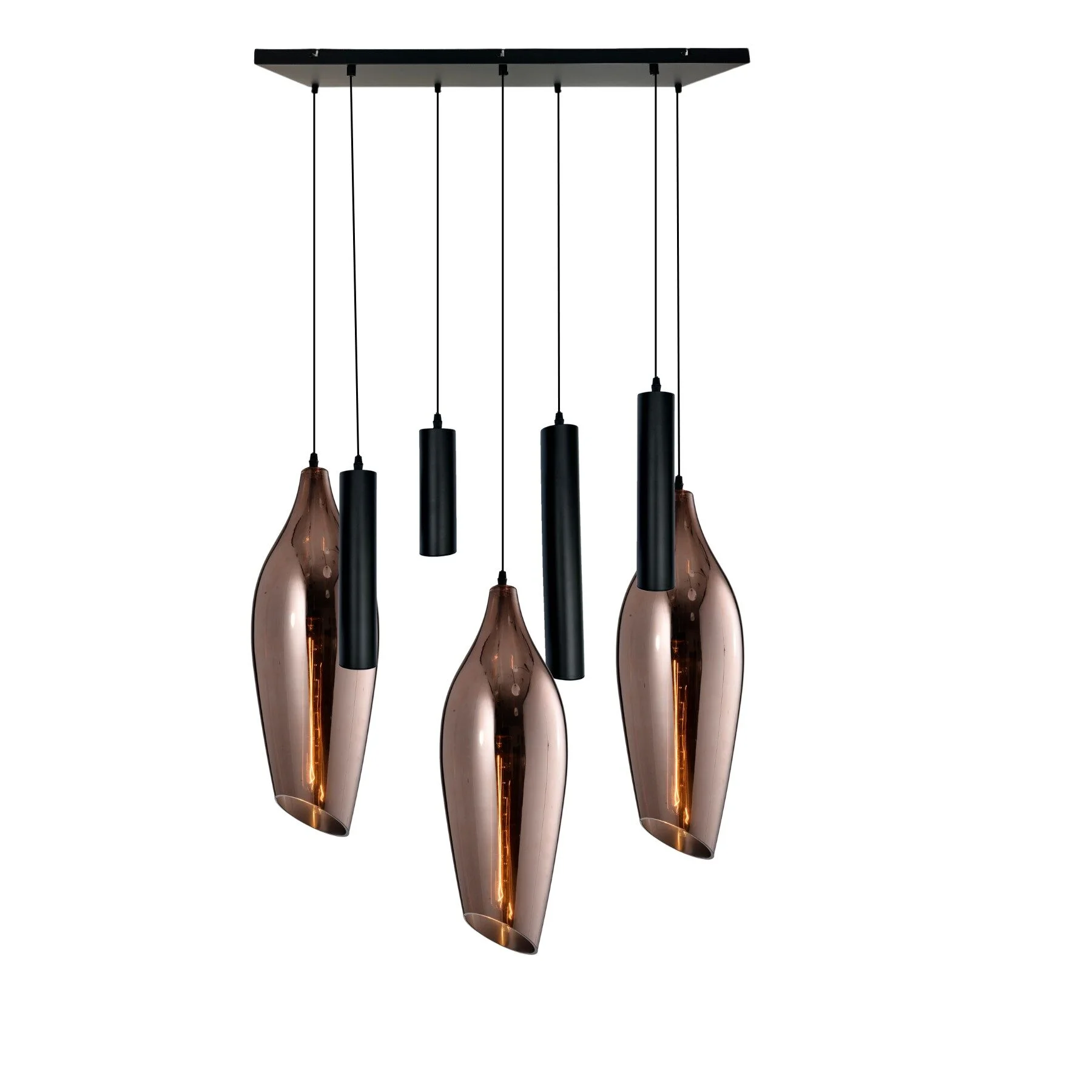 De Mix and Match 22 Belezza Koper met Yora Zwart Rechthoek 80cm 7-Lichts is een stijlvolle blikvanger.
