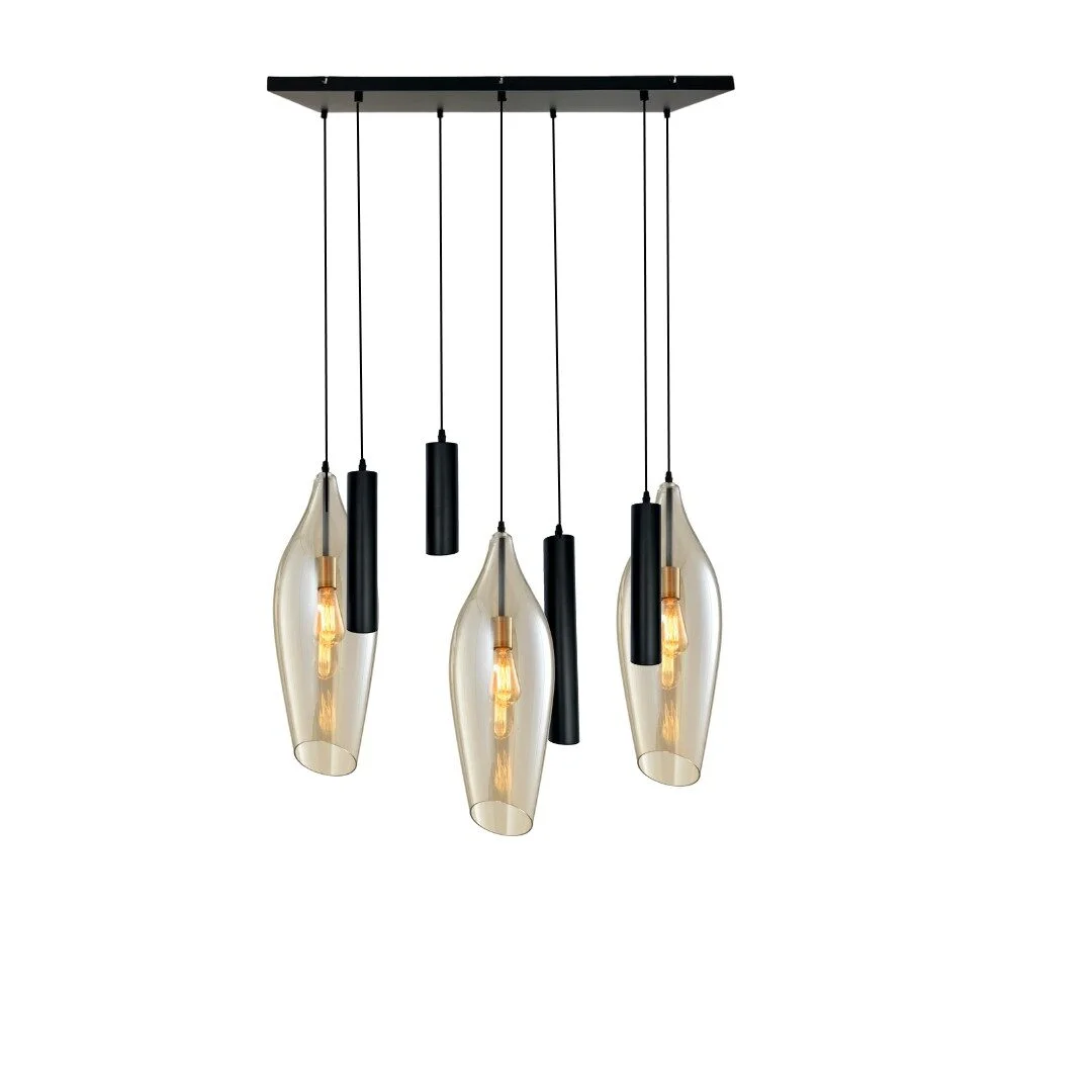 De Mix and Match 23 Belezza Cognac met Yora Zwart Rechthoek 80cm 7-Lichts is een stijlvolle keuze.