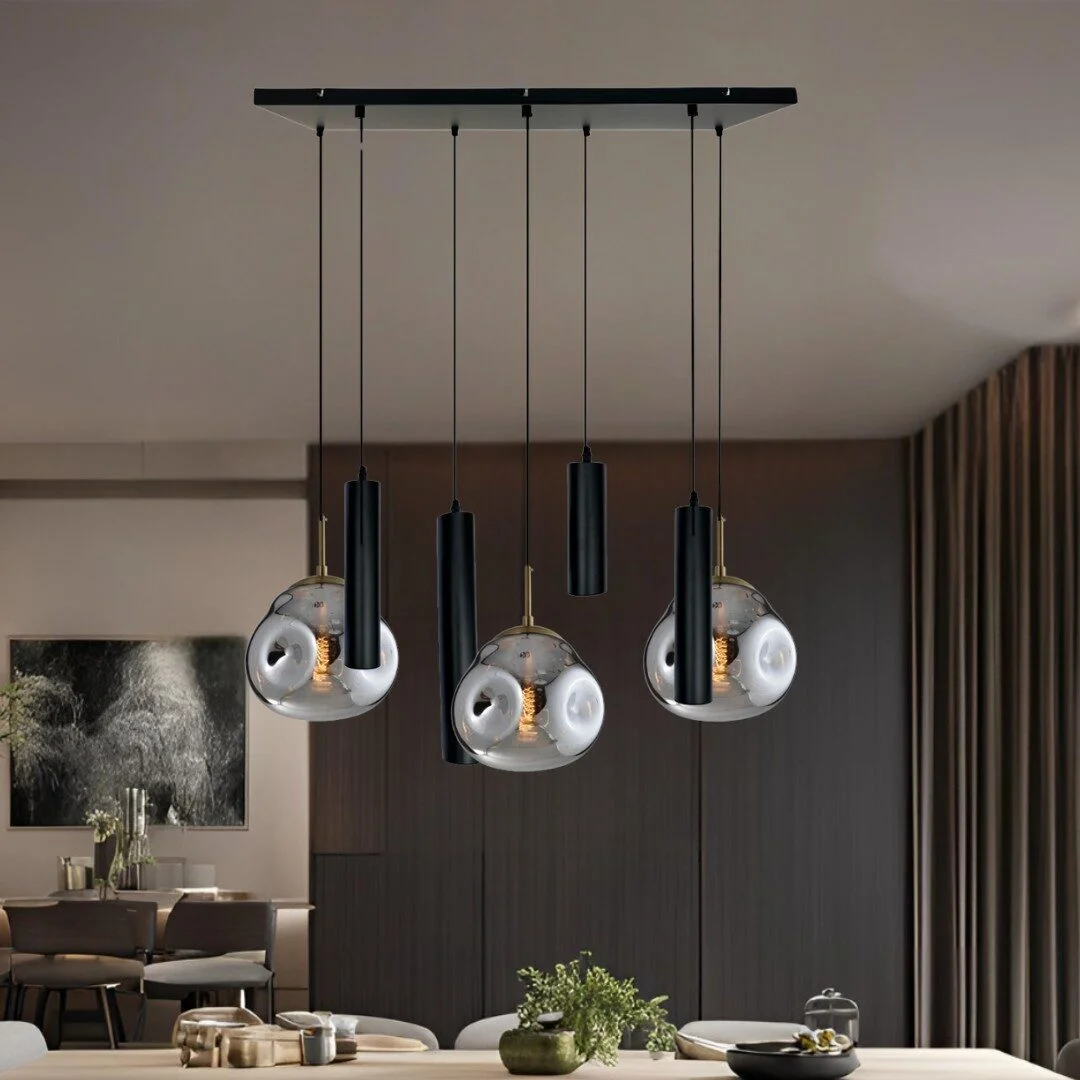 De rechthoekige plafondplaat van 80 cm maakt deze lamp ideaal voor boven een lange eettafel of een kookeiland.