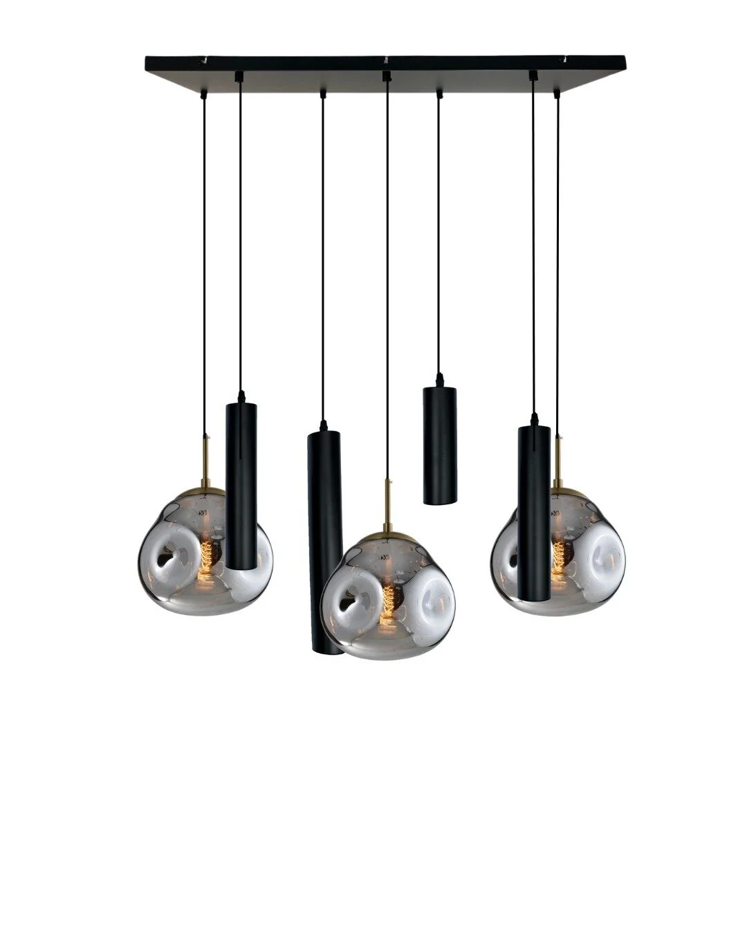 De Mix and Match 30 Jikke Chrome met Yora Zwart Rechthoek 80cm 7-Lichts is een opvallend designstatement.