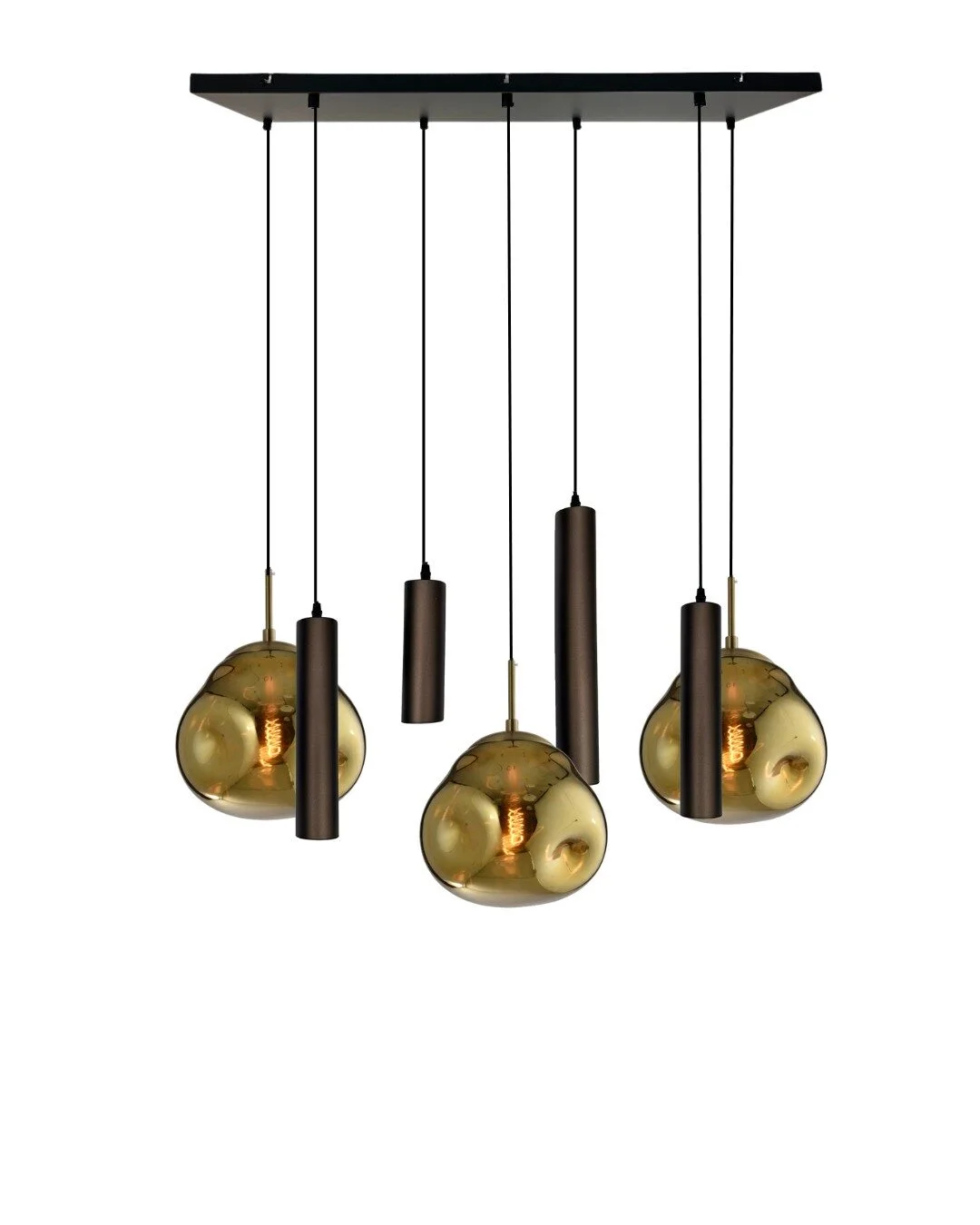 De Mix and Match 31 Jikke Goud met Yora Bruin Rechthoek 80cm 7-Lichts is een stijlvolle blikvanger.