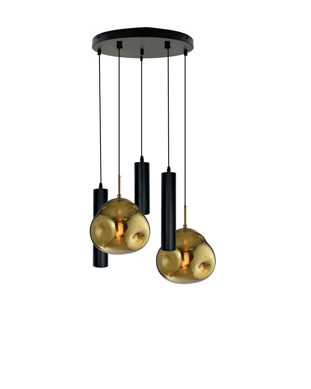 De Mix and Match 32 Jikke Goud met Yora Zwart Rond 40cm 5-Lichts is een stijlvolle toevoeging aan elk interieur.