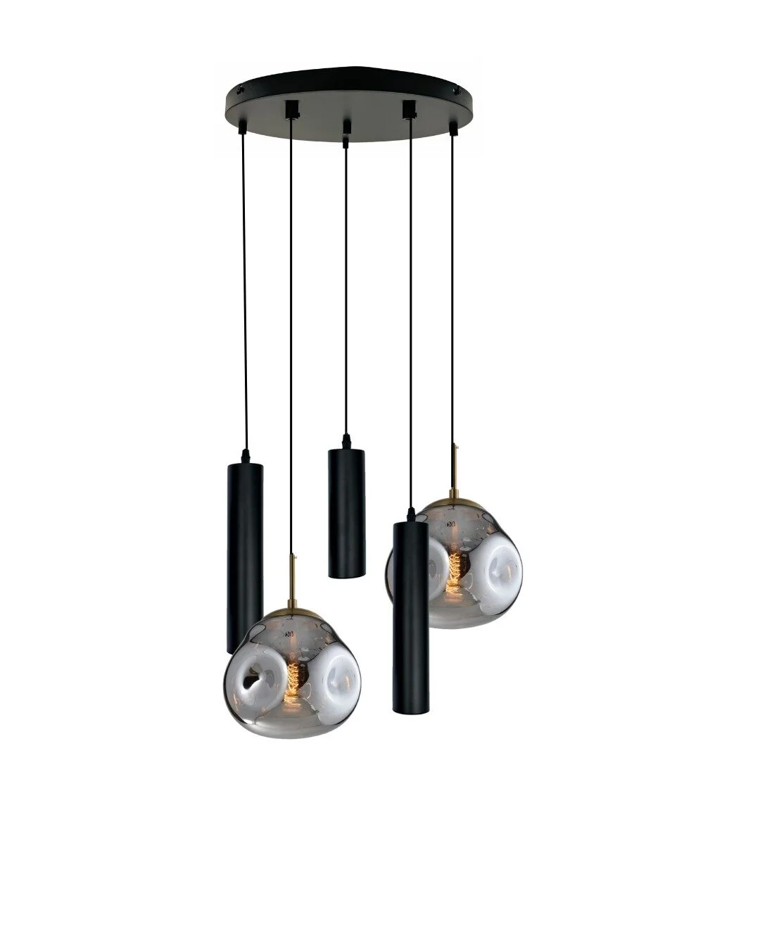 De Mix and Match 33 Jikke Chrome met Yora Zwart Rond 40cm 5-Lichts is een opvallende designlamp.