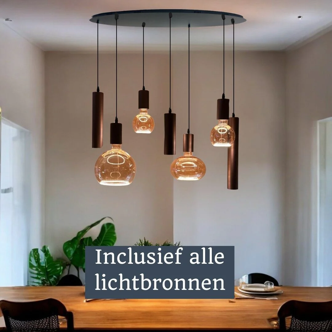 De Mix and Match 50 Segula Gold met Yora Bruin Ovaal 120cm 7-lichts wordt geleverd inclusief lichtbronnen, zodat je direct kunt genieten van een sfeervolle verlichting. Wil je de lichtintensiteit aanpassen? De lamp is dimbaar, en een bijpassende dimmer is verkrijgbaar in onze webshop voor slechts €29,99.